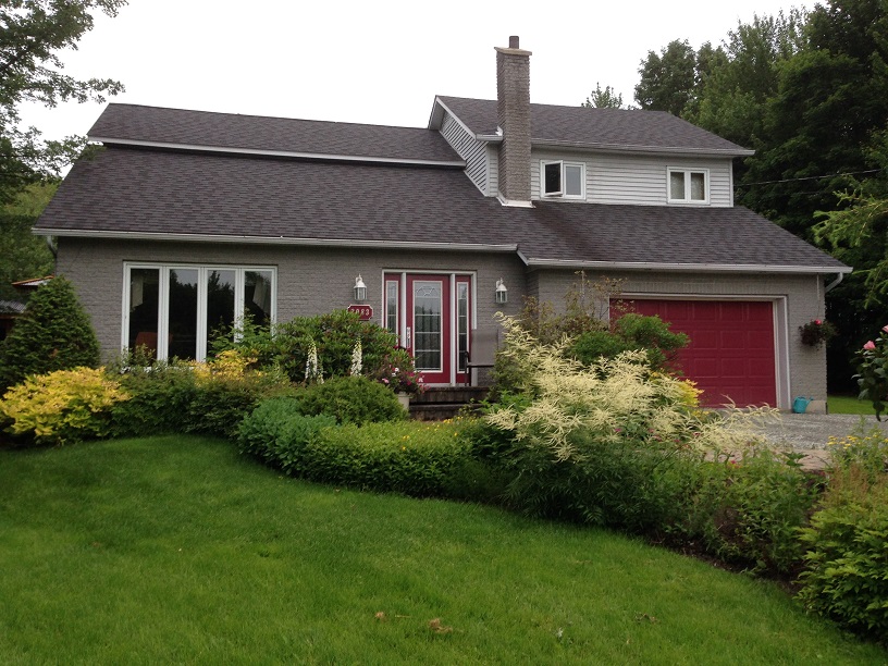 Cour avant de grande dimension avec une explosion de couleurs éclatantes du printemps à l'automne. L’emploi de plusieurs variétés de bulbes et vivaces amènent cette touche d’aquarelle en minimisant l’utilisation des fleurs annuelles.